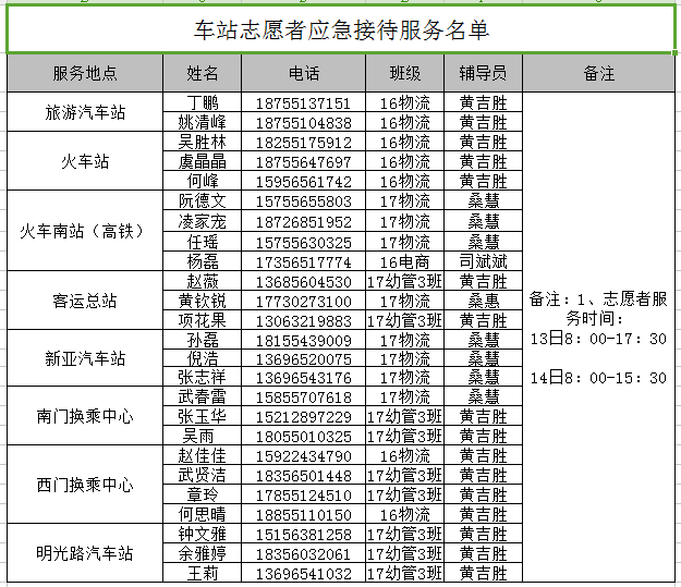 为方便广大考生来我院参加2018年分类招生考试校考,确保考试的各项工作顺利进行,根据学院统一安排,现将2018年分类招生考试校考车站志愿者应急接待服务安排通知如下🕓: