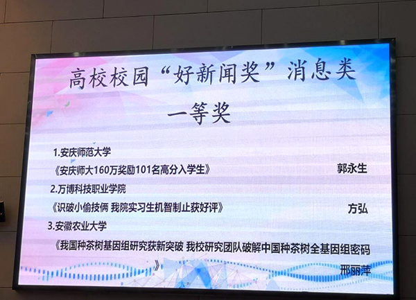 11月11日,由安徽大学生记者峰会、安徽省青年新闻工作者协会和安徽省高等学校校报研究会联合主办,合肥学院🎷、安徽青年报社联合承办的第十五届安徽省大学生记者峰会于合肥学院南艳湖校园隆重举行。应峰会组委会邀请,我院大学生记者团学生记者方弘、傅斌👩💻、葛莹和张业琦四位同学参加此次峰会🙇🏽♀️,我院方弘同学提交的新闻稿件荣获高校“好新闻奖”消息类一等奖的好成绩。