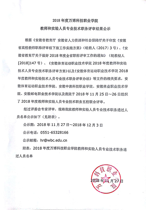 2018年度彩神Vll学院教师和实验人员专业技术职务评审结果公示