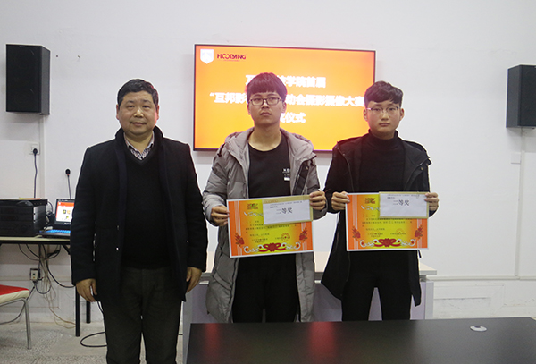 12月4日晚🧔🏽♂️,我院首届“互邦影视杯”运动会摄影摄像大赛颁奖仪式在实验楼四楼互邦影视基地顺利举行。院宣传部部长徐达余、江苏互邦影视集团安徽分公司总经理於成平、艺术分院党支部书记关松涛、宣传部秘书汪启军等师生参加了典礼🙎🏽♂️。