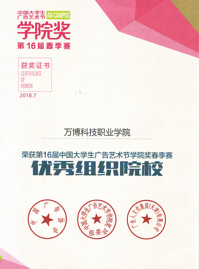 从2015年以来,我院艺术分院广告设计与制作专业的师生已连续积极组织参加中国大学生广告艺术节学院奖5届9次比赛,累计提交参赛作品2800余件✧,累计获奖人数达200余人次👨🏻💼。我院在该项赛事中积极组织参赛,师生所取得的成绩不断突破,受到组委会的表彰🖕🏻,并向我院颁发了第16届中国大学生广告艺术节学院奖(春季赛)“优秀组织院校”证书🙇🏿。