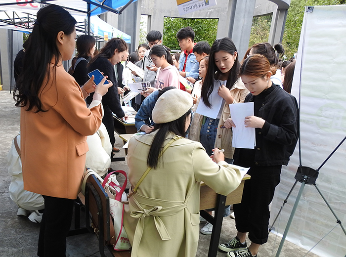 为帮助毕业生和实习生搭建良好的实习就业平台,进一步实现高质量就业🆔,10月16日,彩神Vll在一号教学楼前广场举办2020届就业实习双选会。