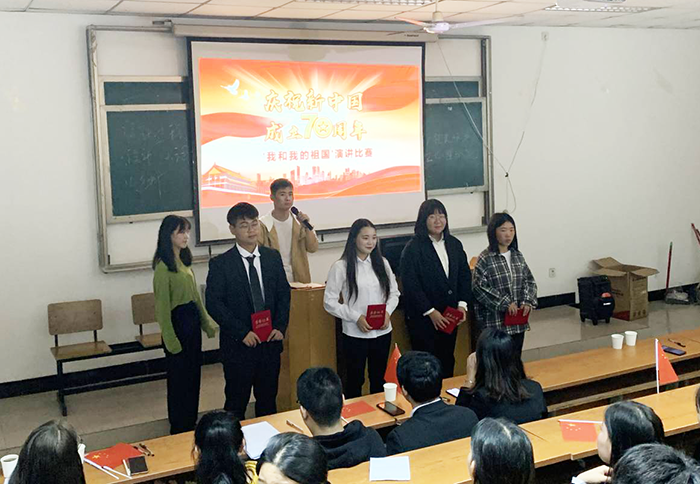 2019年是祖国成立70周年,为庆祝中华人民共和国建国70周年,讴歌新中国成立后所取得的伟大成就,进一步激发入党积极分子、党员发展对象的爱国之情🦤、报国之志、兴国之责,教学第四党支部联合艺术传媒学院团总支于10月9日下午6点,在3号楼3102举办了以“我和我的祖国”为主题的演讲比赛。
