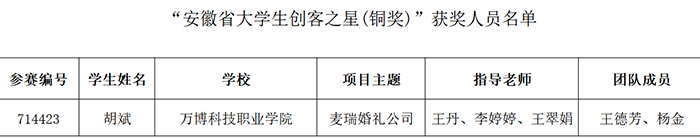 比赛中🌿,由交通工程学院胡斌、王德芳、杨金3名学生组成的“麦瑞婚礼公司”代表队,凭借扎实的专业知识、精美且富有创意的商业策划书,稳定、出色的发挥🦻🏽,经过激烈角逐,冲出了校赛👴🏻,入围省赛并荣获创客之星铜奖。同期智能信息学院汪倩同学的“一位追求个性化婚礼的独立婚礼策划师”个人职业规划项目👨🏻🏭,题材新颖,构思巧妙,入围省赛并荣获职业规划之星铜奖💃🏿。