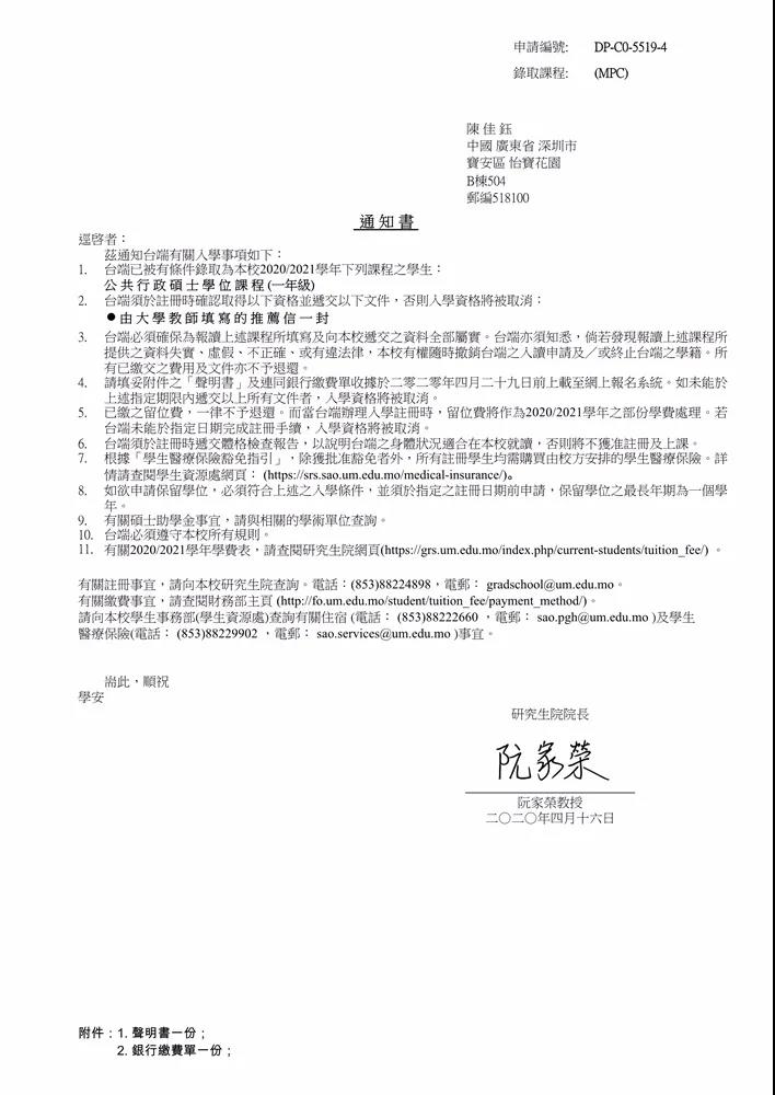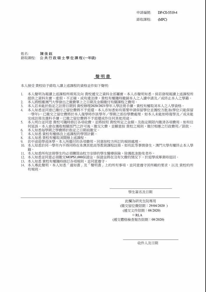 2016年🚶🏻,陈佳钰在深圳工作期间🏇🏿✊,随着职业规划的发展,她希望自己能有一个更好的平台,实现人生的进一步腾飞🤹🏼♀️。这次,陈佳钰选择了竞争激烈的知名学府——澳门大学。