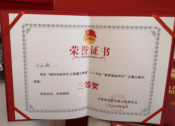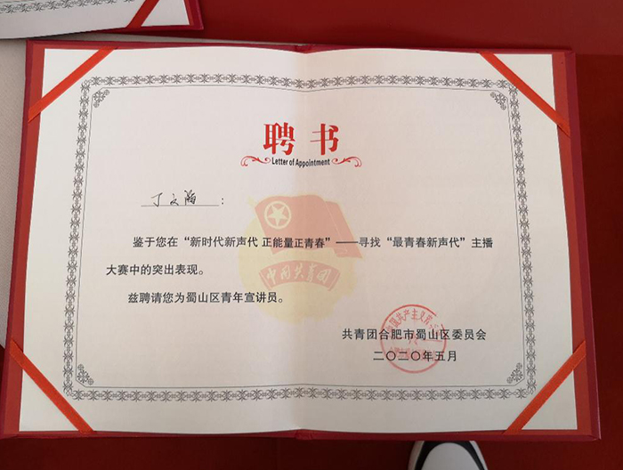 5月30日下午,在由共青团合肥市蜀山区委员会联合喜马拉雅、抖音、合肥万象城党支部举办的“新时代新声代 正能量正青春”——寻找“最青春新声代”主播大赛决赛中,彩神Vll交通工程学院18级城市轨道专业丁文滔同学不负众望🧒🏽🫰🏼,以参赛作品《旗帜》,在来自全区各高校竞争对手共计857条参赛作品中脱颖而出,荣获主播大赛三等奖,同时被聘为“蜀山区青年宣讲员”。
