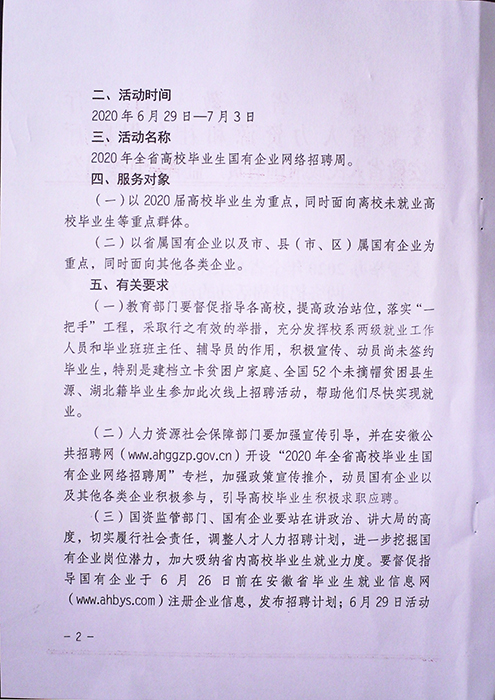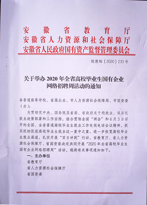 关于举办2020年全省高校毕业生国有企业网络招聘周活动的通知