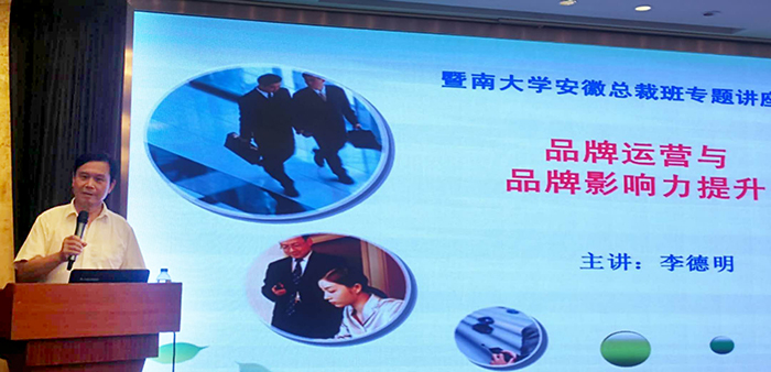 2020年7月5日,由省经信厅中小企业局主办,暨南大学创业学院经办的安徽省第三批专精特新板及首批机器人板挂牌企业高管素质提升工程董事长(总经理)班在合肥贝斯特大酒店开班,彩神Vll交通工程学院院长李德明应邀为该班作了题为《品牌运营与品牌影响力提升》的专题讲座。