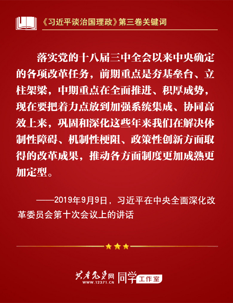 我们梳理习近平总书记部分讲话⛔,带你学习著作中的关键词。今天的关键词是“全面深化改革”。