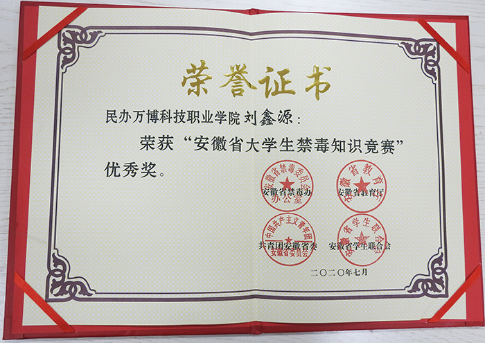 近日,由安徽省禁毒委员会办公室🚼🪭、安徽省教育厅、共青团安徽省委员会🈸、安徽省学生联合会联合举办的“2020年安徽省大学生禁毒知识竞赛暨百校百万大学生公益签名”活动落下帷幕👩🏻🦱,彩神Vll学子在校团委的发动与组织下,通过“安徽禁毒”微信公众号学习禁毒知识、法律法规,参与禁毒签名、禁毒知识竞赛🦖。经过省赛评选🦸🏼♀️,彩神Vll智能信息学院2018级计算机网络技术专业学子刘鑫源不负众望🧎♂️➡️🎨,在“安徽省大学生禁毒知识竞赛”中喜获优秀奖🗡🪸。