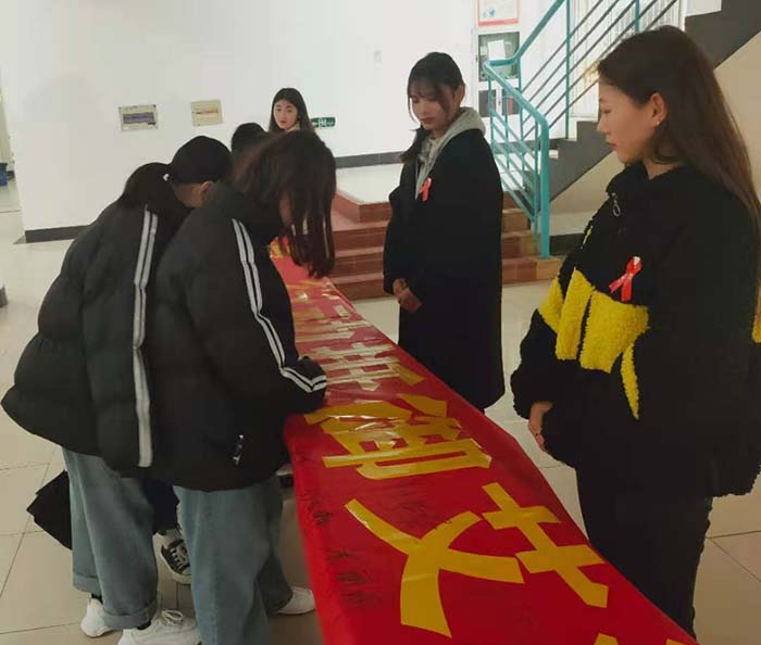在预防艾滋病宣传周期间,校学生社团联合会开展多个校园活动:一是以预防艾滋病宣传横幅签字😂🧑🏻💻、以进班宣传等方式开展“预防艾滋,我是行动者”为主题的校园宣传活动;二是开展以“如何预防艾滋病”为主题开展宣传讲座;三是组织学生观看预防艾滋病题材的微电影;四是开展了“携手防疫抗艾,共担健康责任”为主题的趣味运动会。