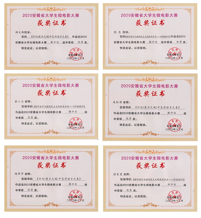 在安徽省教育厅公布的2020安徽省大学生微电影大赛中🚘,艺术传媒学院积极组织学生参赛的30件作品。其中19级广告班的郭亮🦻🏻、柳文卿两位同学分别荣获微影评组优秀奖。