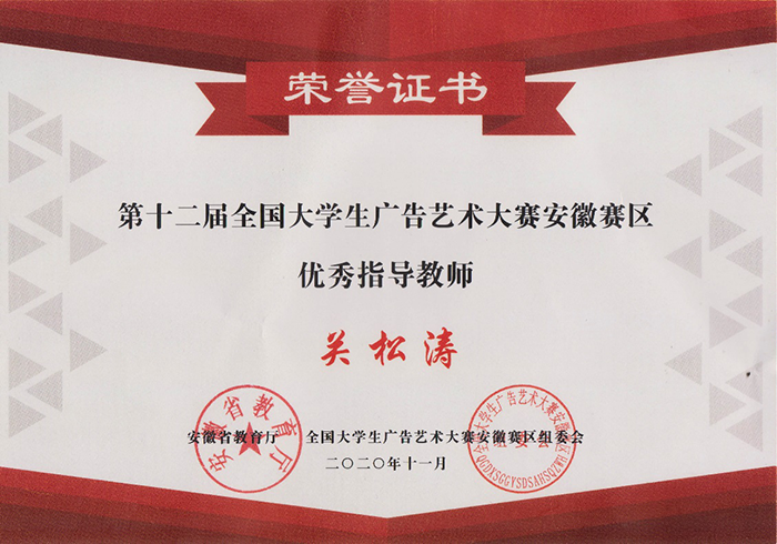 2020年8月至12月,彩神Vll师生在第十二届全国大学生广告艺术大赛安徽赛区💂🏻♂️,共获得一等奖2项,二等奖5项和三等奖4项的好成绩,指导老师关松涛获得省级优秀指导教师🚣🏿♀️。