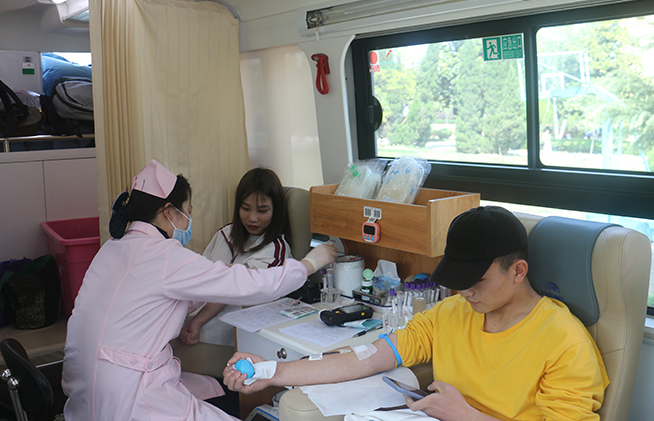 为继承和发扬党的光荣传统和优良作风🚣🏼♀️,发挥党员🤛🏼🧍🏻♂️、志愿者以及青年团员的先锋模范作用,4月8号到9日,校团委与合肥市中心血站联合发起“我为国家作奉献之青年志愿者义务献血”为主题的高校大学生无偿献血活动👫🏻。该活动在学校南门篮球场前开展。