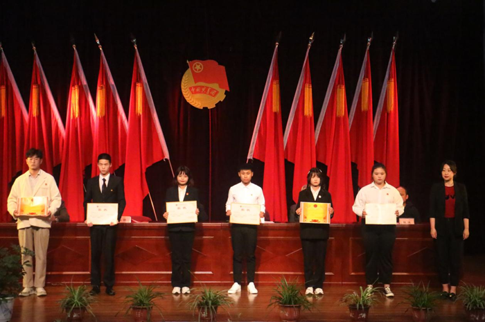 大会在庄严的国歌声中正式开始👨🏻🦱。在此次大会中🕸,副校长马赞宣读团学系统表彰决定,并由校领导分别为获奖集体、个人颁发证书奖状。