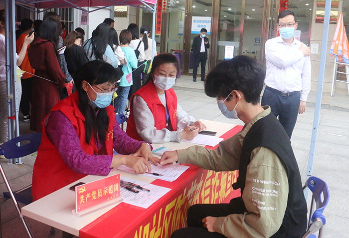 疫苗接种现场分为咨询登记区🧏🏼♂️、体温测量区⏲、信息录入登记区👩🏻✈️、接种区以及留观区。师生们分批次、排好队、戴好口罩有序地等待接种新冠疫苗🧛♂️。金湖社区志愿者为师生答疑解惑维持秩序🏧,引导同学们佩戴好口罩🧽,排队测量体温、签署疫苗接种知情同意书等学生返校相关工作✋🏼。