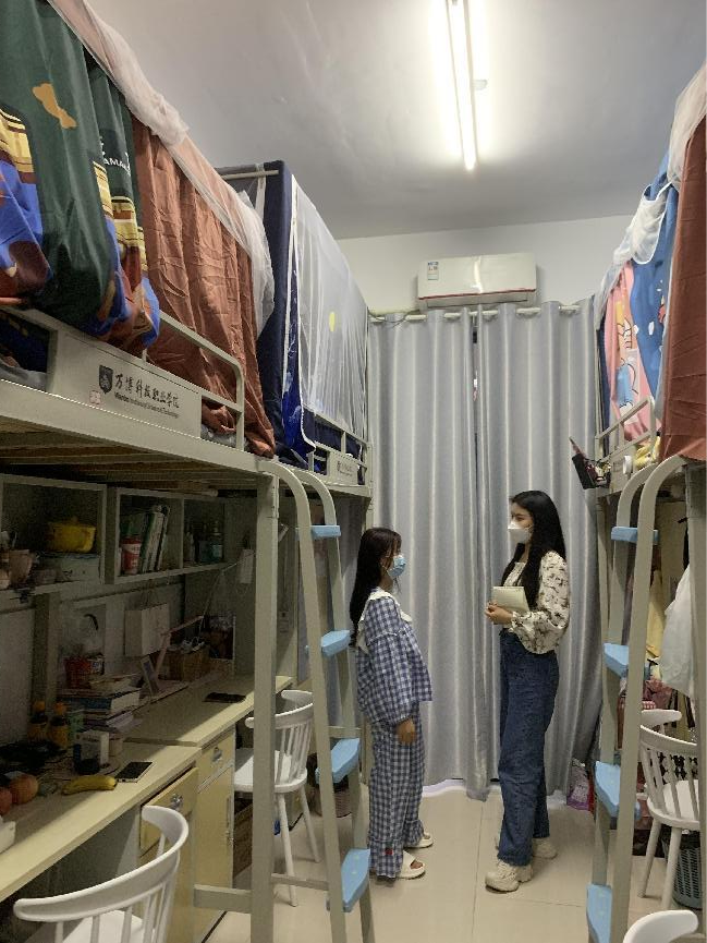 艺术传媒学院辅导员庄雪晴老师,是首批主动请缨进校的教职工之一。为了提高工作效率、争分夺秒,庄老师在学生宿舍和办公室两点一线间穿梭,常常到学生宿舍了解同学们的困难和意见,并向大家宣讲当前疫情防控的形势和学校学院的防疫举措👩🔧,叮嘱大家不必恐慌🕦,不信谣🤵🏿♀️,不传谣📮。在这特殊的防疫阶段🍅,庄老师如邻家小姐姐一样🩸,与同学们一起聊天唠家常,舒缓了学生情绪,还叮嘱大家要开心地把饭吃好◀️,认真把网课上好🦡。