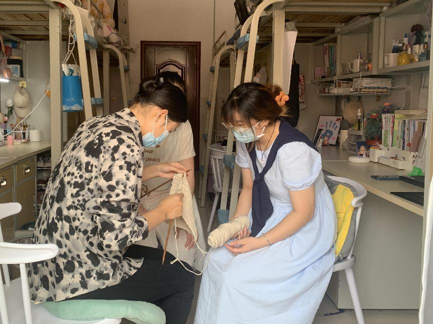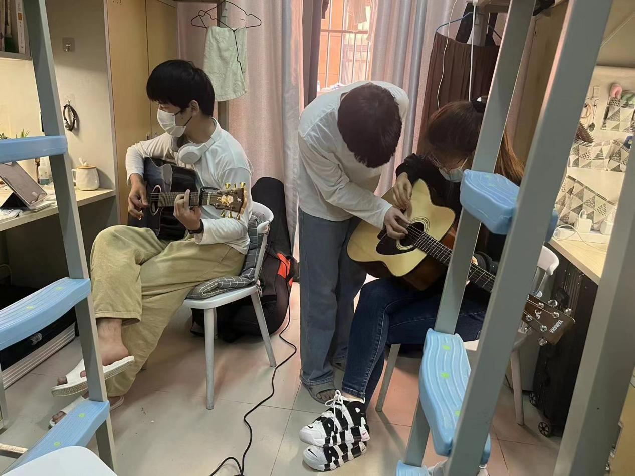 音乐教育学院辅导员沈善红老师在完成保卫处校园安全等相关工作的同时,通过微信群宣讲学校相关政策🚐、落实学校疫情防控要求;对校外居住的学生,沈老师提醒大家做好物资储备、不要慌张👨🏿🎓,配合街道防疫要求;对于校内封闭管理的同学,沈老师带领同学们开展文娱活动👦🏼,调节心情👃🏼、舒缓焦虑⏪。
