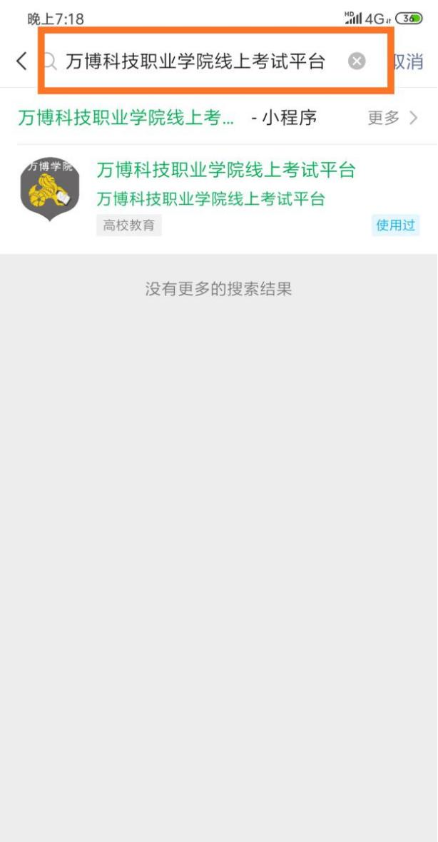 打开手机微信,在“微信”页面中下拉出现小程序查找页面或在“发现”页面的小程序菜单上🎍👩🏽✈️,在搜索框中输入“彩神Vll学院线上考试平台”进行查询🥓,在查询结果中点击“彩神Vll学院线上考试平台”小程序即可打开登录页面😕,或者直接使用微信扫一扫识别二维码进入小程序🧑🏽🏭;