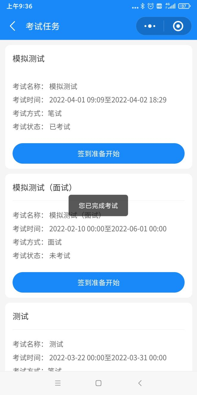 (1)定时考试:平台自动分配考试资源,考试资源充足,考生签到即可开始考试