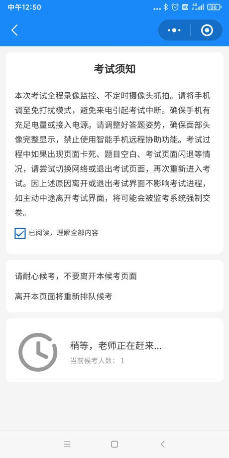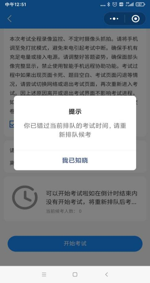 (2)非定时考试:平台自动分配考试资源4️⃣,如果签到考生超出系统设置的人数时✊👭,新进入的考生将要进行排队候考🧝🏼♀️,候考页面中有提示候考时间和排队人数,请考生根据实际排队长度合理安排考试时间🔴,如果退出后重新进入候考页面时,需要重新排队!