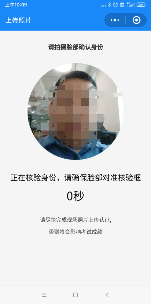(2)在考试开始前,系统要求考生必须进行人脸识别身份验证,平台采用活体检查的方式进行身份核验,点击“开始核验身份”按键后请将脸部对准核验框3秒即可🧑🏻🦯,如核验没通过,可再次进行核验🚫,3次核验不通过且确实是本人操作可联系管理老师处理👵。