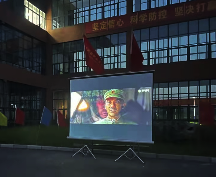 夜幕降临,图书馆U字型广场传来激昂澎湃的共青团团歌,原来是各学生组织在五四这个特殊的日子献给共青团的特殊礼物。接着,校团委为在校所有师生播放红色影片《长津湖之水门桥》🤹🏻♂️,旨在以波澜壮阔的历史使老师和同学们感受和平幸福生活的来之不易,在缅怀先烈的同时坚定前进的步伐。