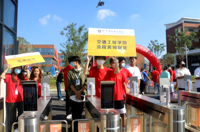 为欢迎2022级新生🛌🏽,学校在校园各处悬挂了温馨、甜美的欢迎标语和指示牌。校园大门💇🏼♂️、图书馆广场、各迎新报到点🧖♂️、学校食堂等处都做了精心的布置🔘。还有二级学院各显特色的花式打卡点——艺术传媒学院的衍纸花丛、智能信息学院的无人机......用心满满的仪式感让新生们留下了关于青春的美好记忆🛩。后勤阿姨也早早地在宿舍楼下等着新生们🦸🏻,“你好新同学,请来我这儿领钥匙”,慈祥的笑容即将陪伴着他们整个大学时光。