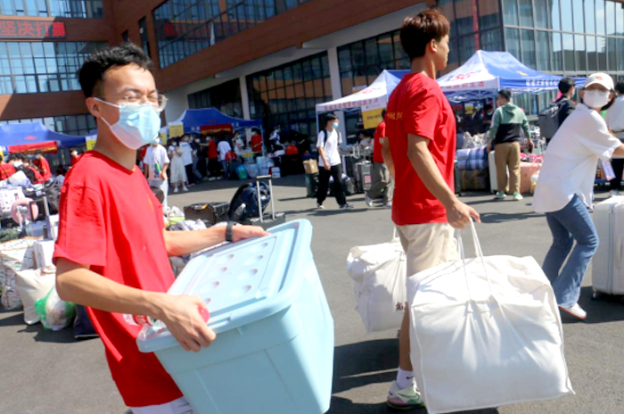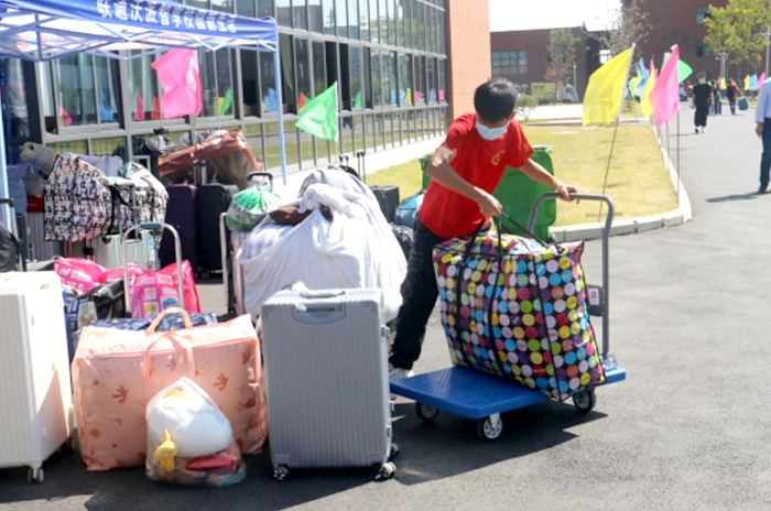秋澄景清,碧空如洗。9月16日,金色的阳光洒在路面,泛着点点星光,新生们迎着和煦的微风,从各地奔赴而来♜😅,齐聚万博,开启大学生活“新”旅程🤵🏻♀️。