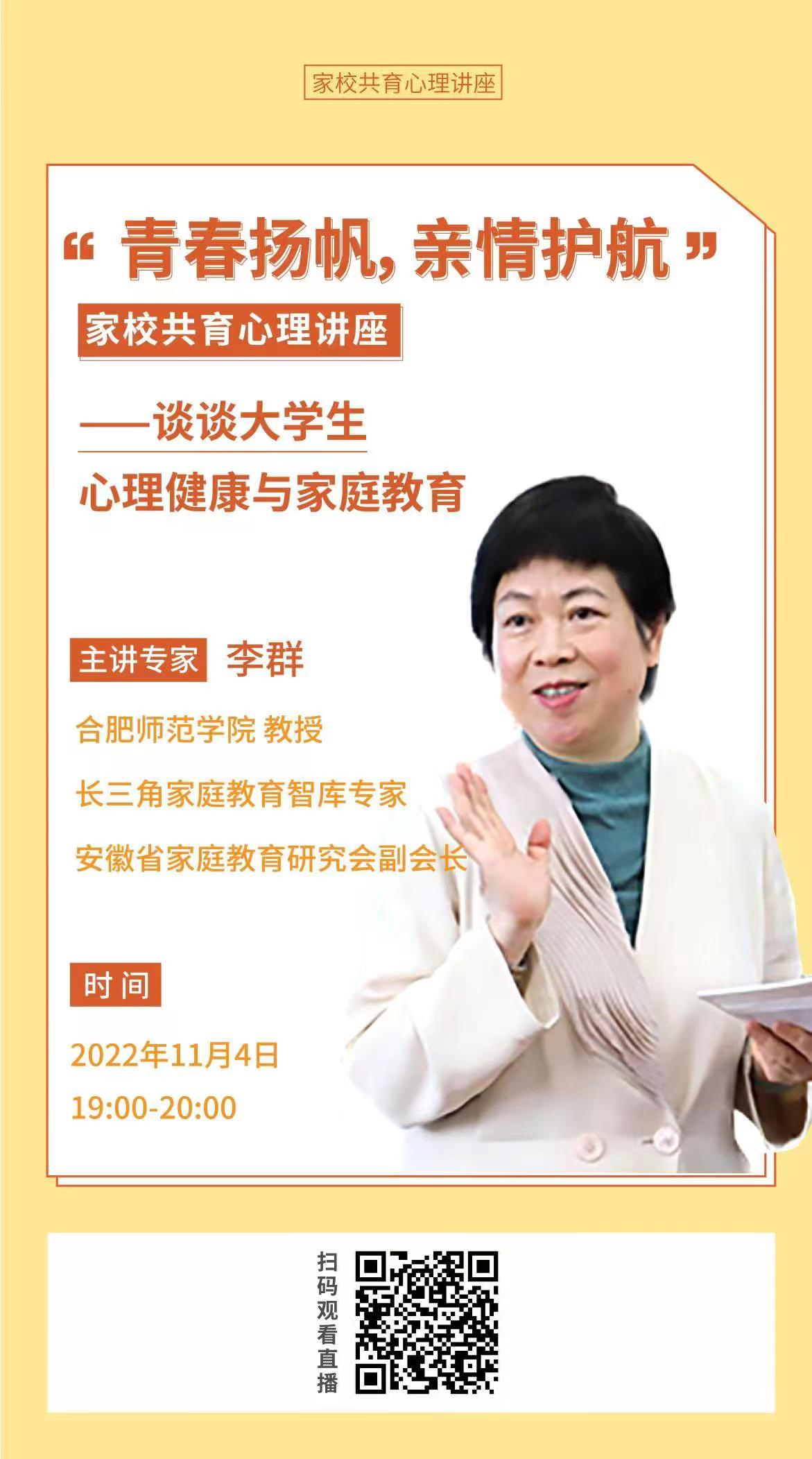 为贯彻落实安徽省教育厅《关于深化家校共育促进学生心理健康教育工作的通知》的文件精神🥿❎,深入开展家校联动👨🏼🚀,发挥家庭育人重要作用🦸🏿♂️,共同推进学生心理健康教育工作,提升学生心理健康素养🦘,现开展“家校共育”线上心理讲座🤢。具体事项通知如下😗: