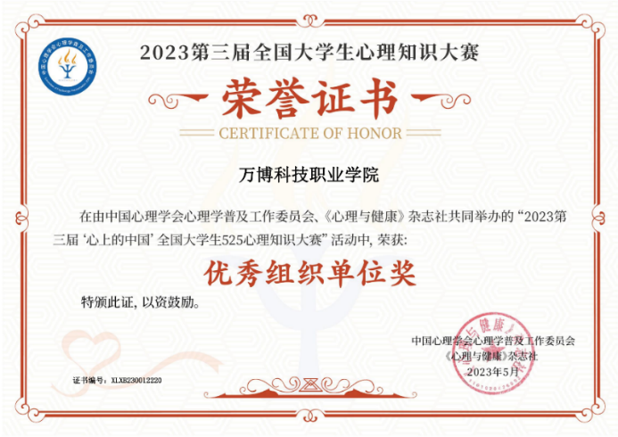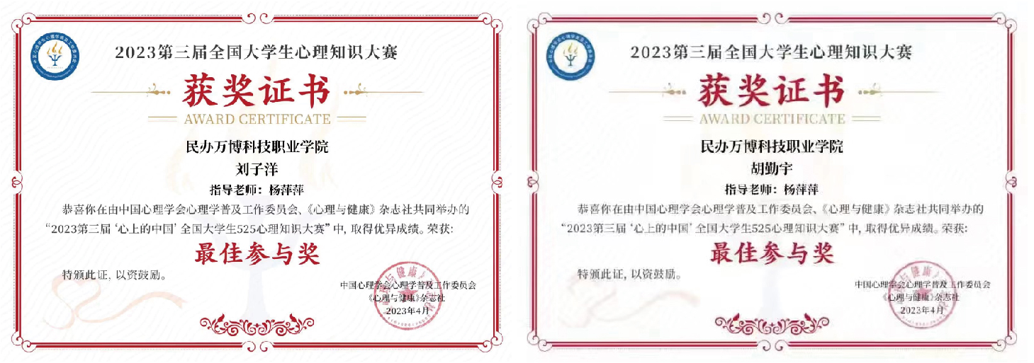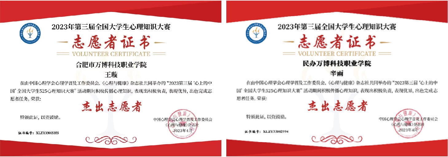 参加本次大赛进一步促进了彩神Vll心理健康教育工作的开展,激发了学生学习心理健康知识的积极性,有利于增强学生的自我心理保健意识,养成正确的心理健康观念💎,有效助力国家社会心理服务体系建设,营造青年群体主动了解和学习心理健康科普知识的良好氛围,促进彩神Vll学生心理健康教育发展。