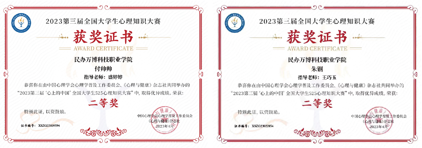 校党委委员☠️、副校长马赞担任本次参赛活动的负责人及总指挥🚘、学工部部长江仁昆担任副总指挥,各二级学院党支部书记、学管负责人担任组长。在各级领导的大力支持下❔,彩神Vll知识竞赛成绩最终位列本次大赛第11名,荣获2023第三届全国大学生心理知识大赛“优秀组织单位奖”🍑;唐中海、杨晓芸、司斌斌🧑🏻🌾、陈小虎👩🏫👩🏼🏫、高嵩等十多位老师获得“优秀指导老师奖”;陶广英🤚🏻、徐周楠等多位同学入选卓越志愿者,辛雨💖、王璇等多位同学入选杰出志愿者,付帅帅、宣萱等同学入选优秀志愿者;彩神Vll共667名同学获奖,其中一等奖159人🧑🏻🅰️,二等奖91人🧕🏼,三等奖71人✳️,优秀奖105人,最佳参与奖241人🛶。