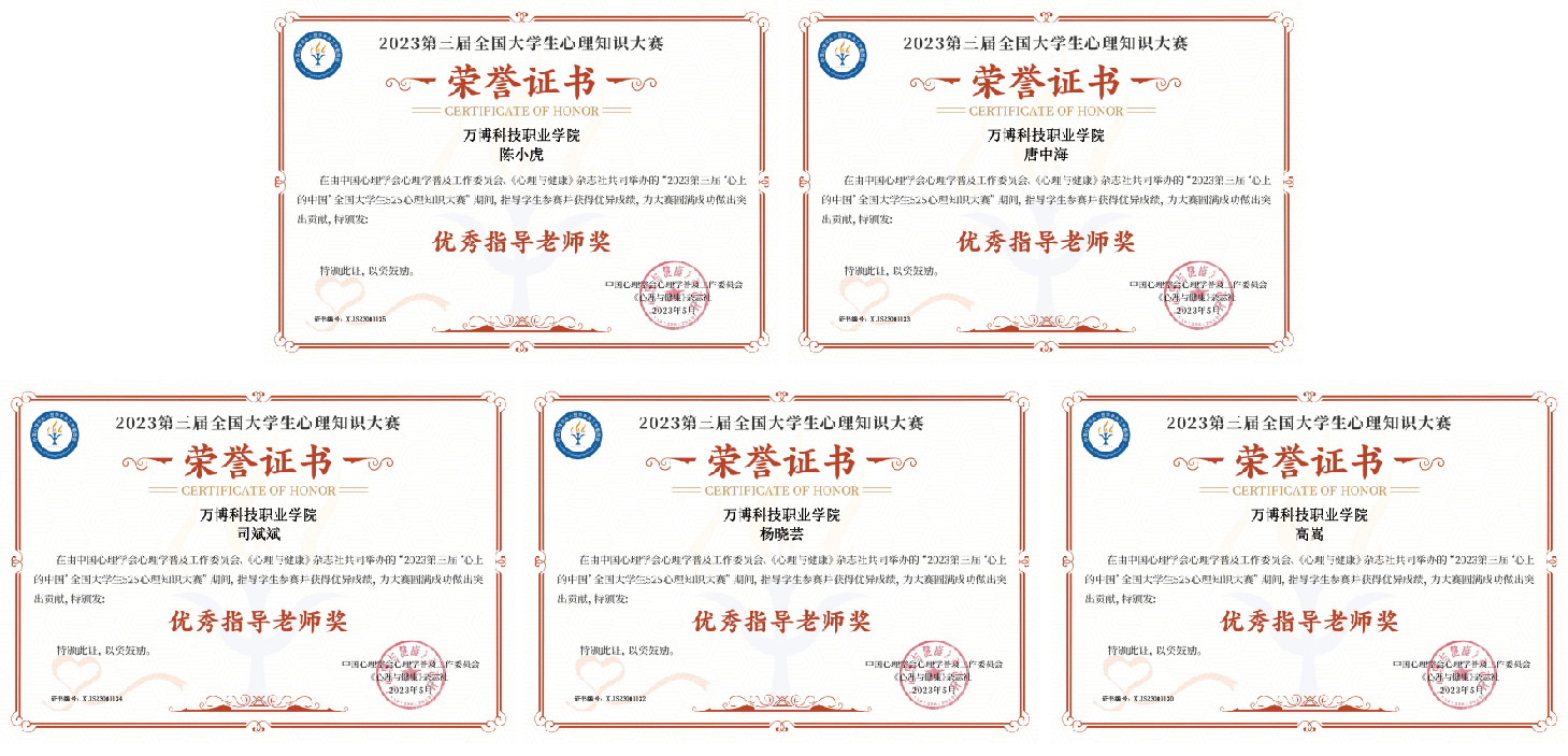 院党委委员、副院长马赞担任本次参赛活动的负责人及总指挥💳,学工部部长江仁昆担任副总指挥🤹🏻,各二级学院党支部书记、学管负责人担任组长。在师生共同努力下,本次心理知识大赛位列第11名,荣获2023第三届全国大学生心理知识大赛“优秀组织单位奖”🤸🏽♀️。唐中海、杨晓芸🤰🏼、司斌斌、陈小虎、高嵩等十位老师荣获“优秀指导老师奖”。陶广英4️⃣、徐周楠等同学入选卓越志愿者;辛雨、王璇等同学入选杰出志愿者🦵🏼;付帅帅、宣萱等同学入选优秀志愿者🧑🏿🦰。