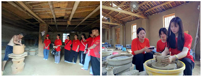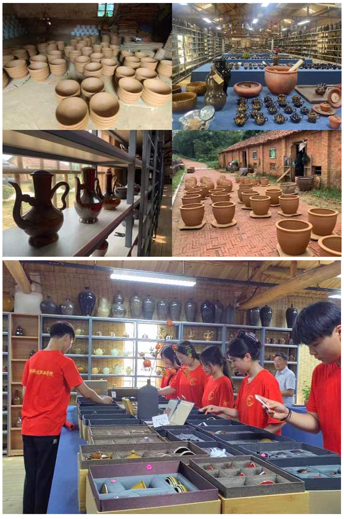 7月2日下午🧑🏻🦽,实践队走进素有“中国六千年古窑之乡”美誉的痘姆古陶非遗传习基地实地调研。实践中🚵🏿👶🏽,队员们了解古陶历史、参观古陶展馆,在极其简陋工作室里🧖♂️,老艺人几十年如一日的重复着相同的动作,地上也摆满了各式各样的制陶材料、工具、半成品……而最引人注目还是在基地边匍地而卧的古窑,当地人称之为“龙窑”🧑🏿🍼,它可是全国为数不多的还在使用的古窑🏞。深厚的历史文化气息和非物质文化遗产独特魅力让队员们赞叹不已。