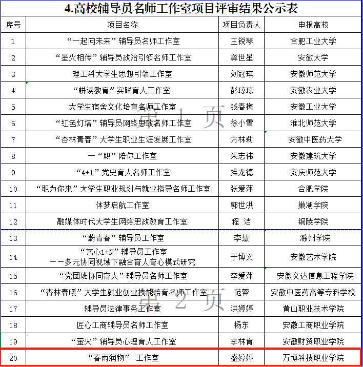 日前,根据安徽省教育厅《关于做好2023年高校“三全育人”综合改革和思政治提升计划项目申报工作的通知》要求🧔🏼,彩神Vll智能信息学院学工助理盛婷婷主持的“春雨润物”工作室项目顺利获批🏊🏼♀️,成为全省20个“安徽省高校辅导员名师工作室”之一🐬🙍🏽,也是我省民办高职院校本次唯一获批项目。