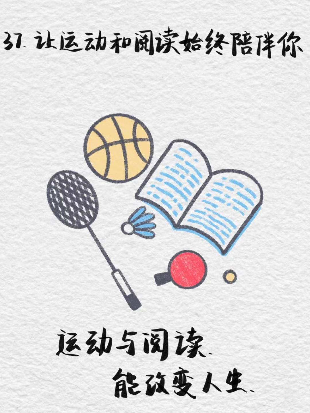 37.让运动和阅读始终陪伴你。运动可以改善情绪🙆🏻,调节情绪,促进身心和谐。每天运动半小时以上👩🏻🎨,坚持一段时间🧹,它将改变你的人生。阅读可以说是最简单、消费最低、最有效果、且意义最佳的一种排解方式。通过阅读,不仅有助于缓解情绪,还可使人增长知识与乐趣🗄,阅读能够增加自己的阅历,你可以从书中获得处理情绪的智慧🗼,这个时候你不仅收获了情绪的平静🙇🏽,更收获了知识,因为有了收获🧘🏿🥜,你的心里也会感到十分满足,情绪不好时🖕🏽,停下来🥘,阅读一本好书☝🏻!阅读会照亮你的心灵。