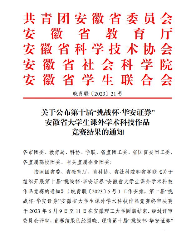 彩神Vll在第十届“挑战杯·华安证券”安徽省大学生课外学术科技作品竞赛中,两支队伍获得“三等奖”𓀓。