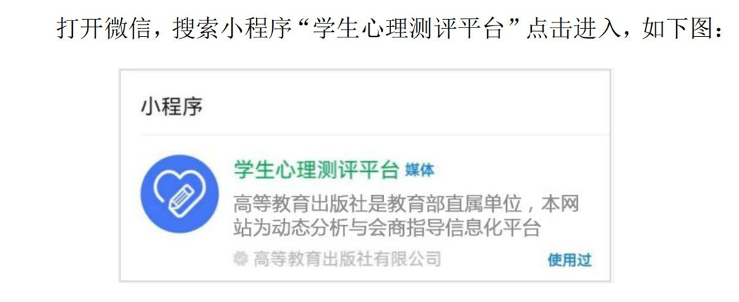 第一步:手机微信扫描二维码登陆进入,或直接在微信小程序里搜索小程序“学生心理测评平台”