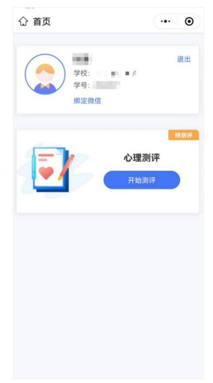 第四步:登录后可看到个人信息和心理测评两个模块。点击“绑定微信”🫱,下次即可一键登录,无需再进行手机号验证码操作。