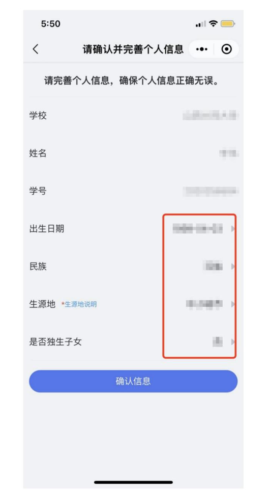 第三步👷🏽♀️:完善个人信息👨🦯,点击“确认信息”,进入测试界面