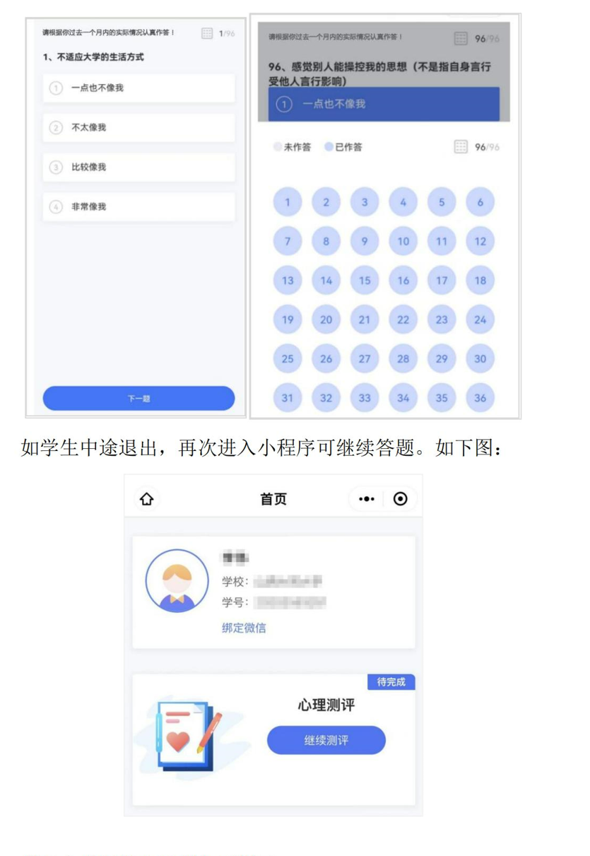 如测评者中途退出⛷,再次进入小程序可继续答题,如下图😊👨🏼🎨: