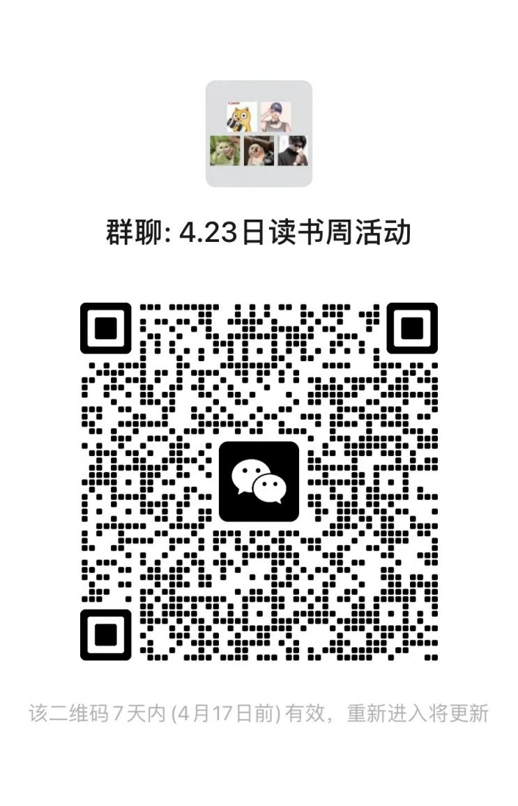 此次读书日系列活动二维码(七天内有效,七天后联系活动组委会:13155152696)