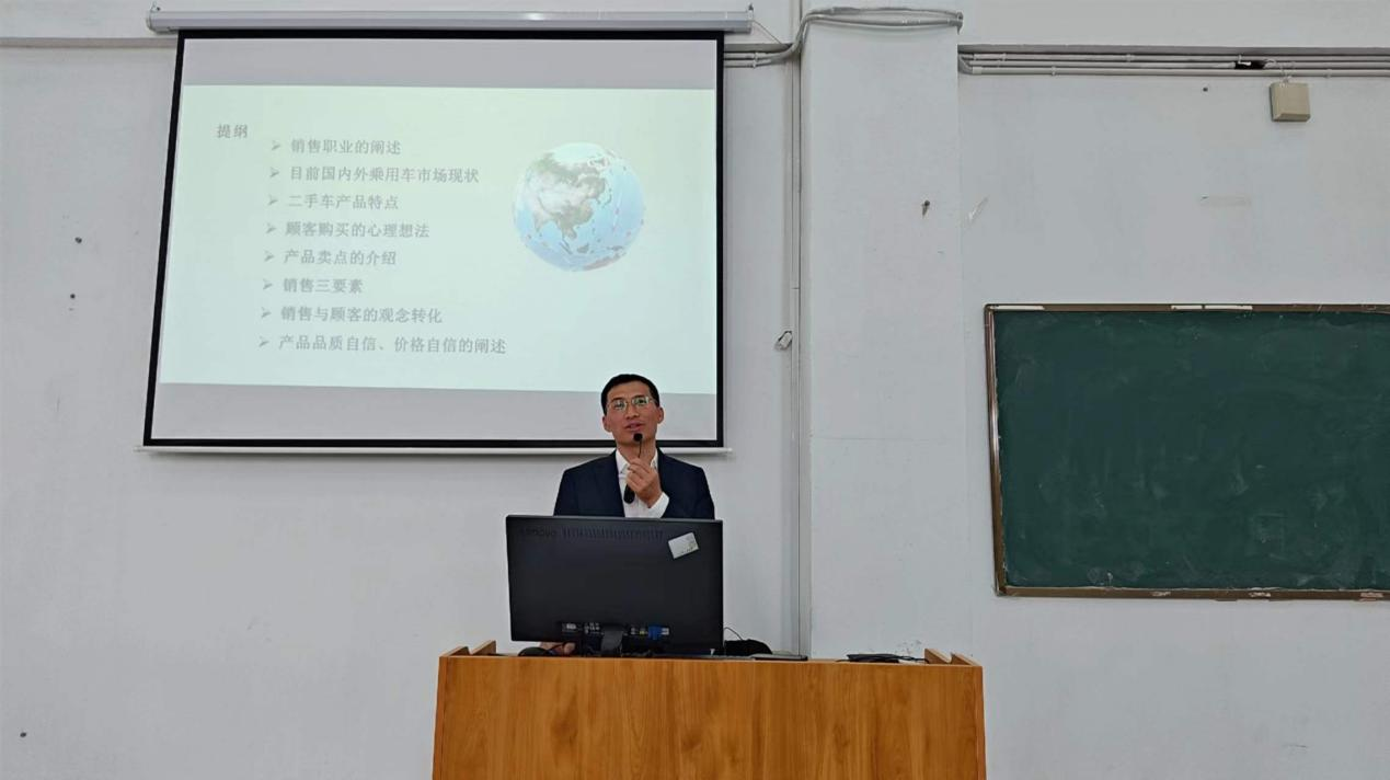本次讲座,陆淑林重点围绕二手车产品特点、国内外二手乘用车市场现状、二手车销售要素、二手车销售与顾客的观念转化等八大主题🦣,系统讲授二手车销售岗位的就业特点及方向⛪️。他立足安徽二手车市场,结合当前市场数据和真实案例,分析了二手车市场的广阔前景和发展趋势,并就二手车销售关键因素及市场销售策略作详细教授。其深厚渊博的专业知识、深入浅出的示例阐述给大家留下了深刻印象🦻🏿。