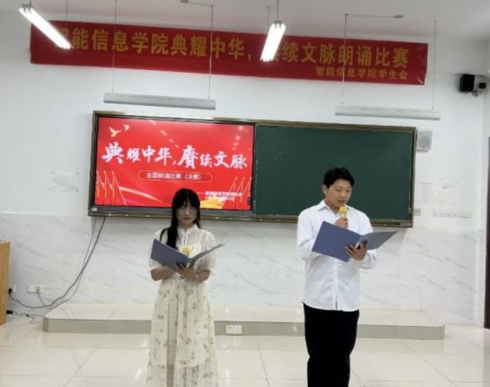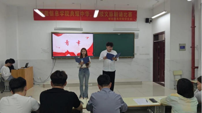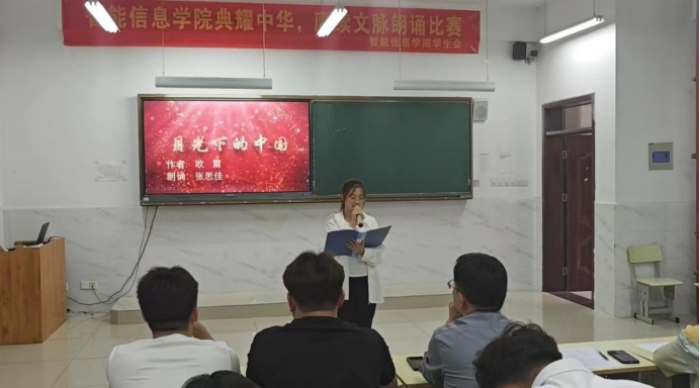 为全面贯彻落实党的二十大精神,服务教育强国、文化强国建设,加大普通话推广力度,传承中华优秀语言文化👌💁🏽♂️。5月30日下午🌩,智能信息学院“典耀中华,赓续文脉”朗诵比赛在1201教室顺利举行。
