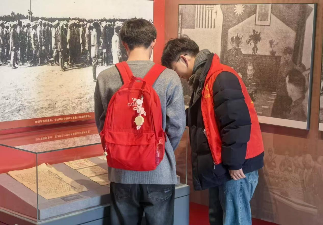 实践队来到新四军江北指挥部旧址。队员们通过观摩珍贵历史文物🙅♀️、图片资料🏋🏻♀️,深入了解革命先辈的英雄事迹。一件件饱经沧桑的实物、一张张泛黄的历史照片☦️✍🏻,让队员们深切感悟到革命先辈坚定的理想信念和不畏牺牲的革命精神。在场队员深受触动,纷纷表示要将红色基因融入青春血脉🐛,传承革命精神。