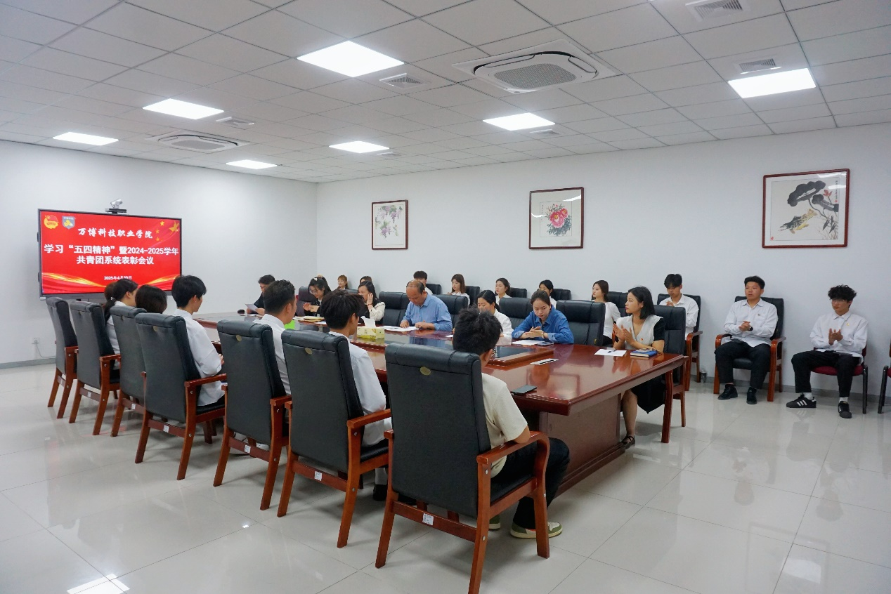 为深入学习贯彻党的二十大精神以及习近平新时代中国特色社会主义思想🍧,充分发挥先进团学组织和团员青年的示范引领作用,4月30日,学校组织召开学习“五四”精神暨2024-2025学年共青团系统表彰会议😇。校党委副书记、执行校长张进🧑🏽,校党委委员、团委书记王媛媛🌀,各二级学院团总支书记🐞,受表彰的先进集体和学生代表参加会议🤵♀️🦇。会议由校团委委员许鑫宇主持。