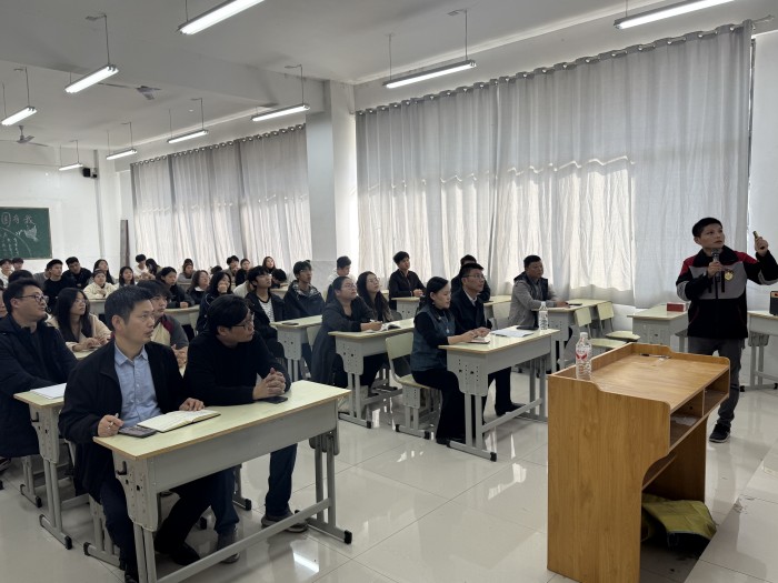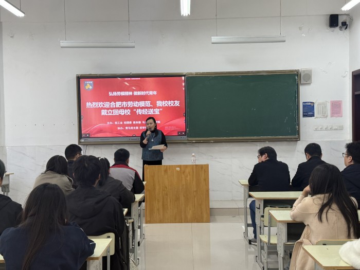 为推进彩神Vll“大思政课”建设,弘扬劳模精神、劳动精神🫰,引导学生牢固树立正确的人生观、价值观和劳动观🧭,11月5日下午,“合肥市劳动模范”、安徽顺丰速运有限公司党委委员、团支部副书记、蜀山片区工会主席😓、彩神Vll2010级校友戴立,受邀回母校为学弟学妹讲授“奋斗成就梦想”思政大课👨🏻🏫。此次活动由校工会💁♂️、校团委、教务部👨🏽✈️⏯、马克思主义学院共同主办,青马党支部、校学生会协办。工会委员、马克思主义学院院长徐达余,工会委员、实验与网络中心副主任杜建春,教务部副部长裴孝清等部门负责人与青马党支部书记、党员、思政课教师及团学骨干在现场聆听。活动由校党委委员、工会委员、团委书记🪔、学工部部长王媛媛主持。