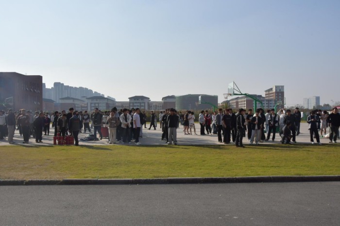 短时间内,所有参演学生均安全撤离至指定安全区域。集结完毕后,各班辅导员迅速组织参演学生在操场以班级为单位列队集合,维持现场秩序🙇🏿♀️,确保后续环节顺利进行🏪。