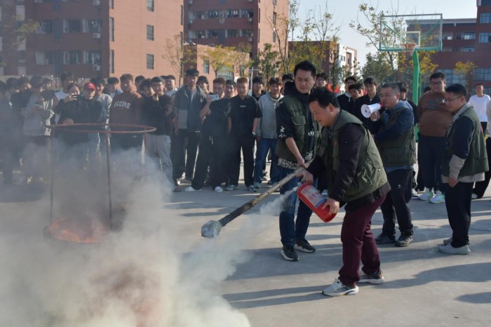 理论讲解结束后6️⃣,实战环节正式上演。在专业人员的指导下,师生与物业员工代表分批上前👨👦👦,面对模拟火源,亲自操作干粉灭火器进行扑救。一时间⏪,现场干粉弥漫,模拟火源逐个被扑灭🫄🏿🍅。刚体验完的同学兴奋地表示🧎🏻♀️:“以前只在电视上看过怎么用灭火器😥,今天亲手操作了一次,心里终于有底了。万一真的遇到小火灾,我知道该怎么正确应对了。”