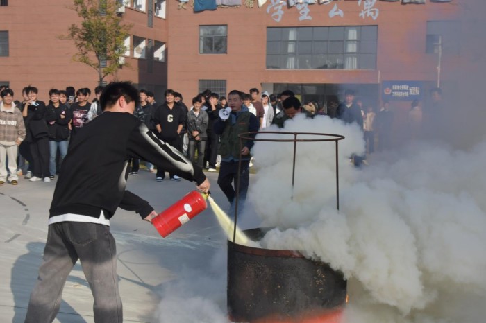 随后,学校特邀的安徽永达安消防科技工程有限公司的专业人员为师生进行现场教学,详细介绍火灾种类、灭火器分类、工作原理等理论知识👨🔬。